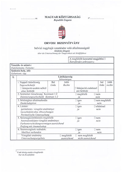 Hajósok orvosi alkalmassági vizsgálata A Magyar Hajóorvosi Központ kijelölt orvosaként a 21/2002 GKM-ESZCSM együttes rendelet alapján az alábbi vizsgálatokat végzem.